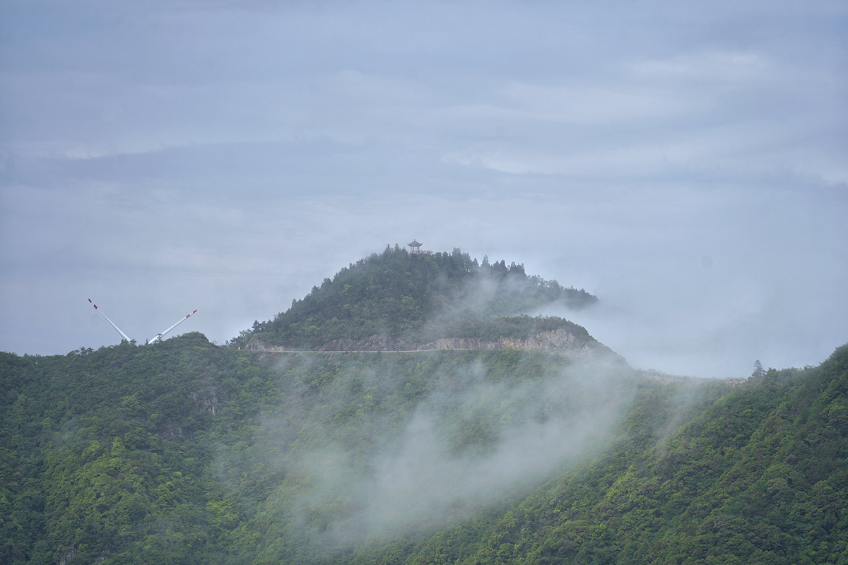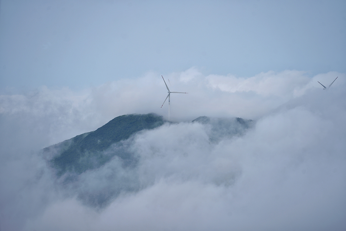 湫水山為三門的主要山脈,其主峰是三門境內(nèi)的最高峰。風(fēng)力資源豐富,為發(fā)展清潔能源建有眾多的風(fēng)力發(fā)電機組,組照拍攝于湫水山頂風(fēng)電場。