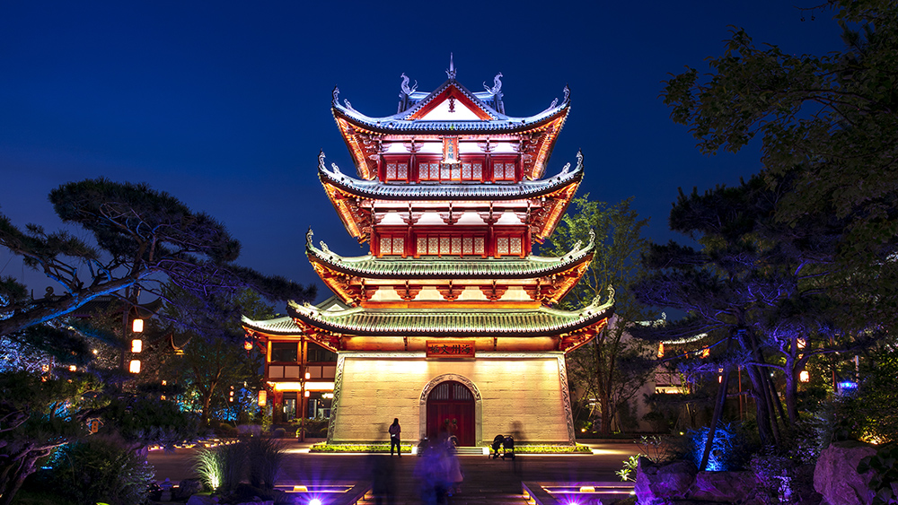 拍攝于2022.6.16建設(shè)完工后開業(yè)的葭芷老街夜景。
