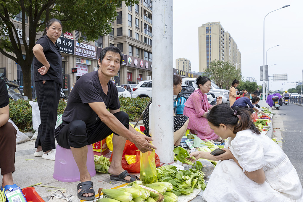 6-4 臨近傍晚,買菜的路邊攤排起了長龍,下班的打工人紛紛前來買菜,顯得鄉(xiāng)村街道路邊攤點管理很寬松。