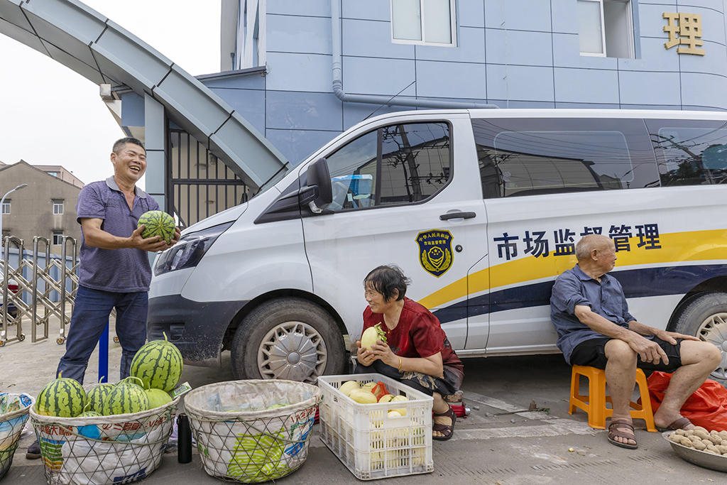 6-1 鄉(xiāng)村街道市場管理處門口,農(nóng)民們悠閑得賣著自家種的農(nóng)產(chǎn)品,畫面看著很和諧。
