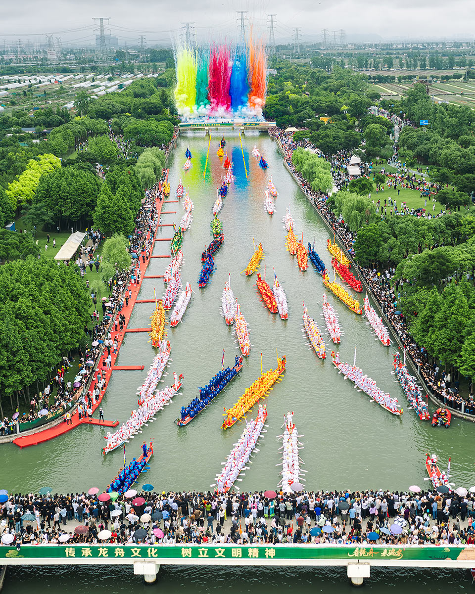 5月20日至26日,浙江省瑞安市舉行傳統(tǒng)劃龍舟活動。600艘色彩斑斕的民間龍舟,在瑞安的塘河上劈波斬浪,劃手們伴隨著擂鼓聲整齊劃一奮力向前。河岸邊,彩旗紛飛,人潮涌動,吶喊助威熱血沸騰。