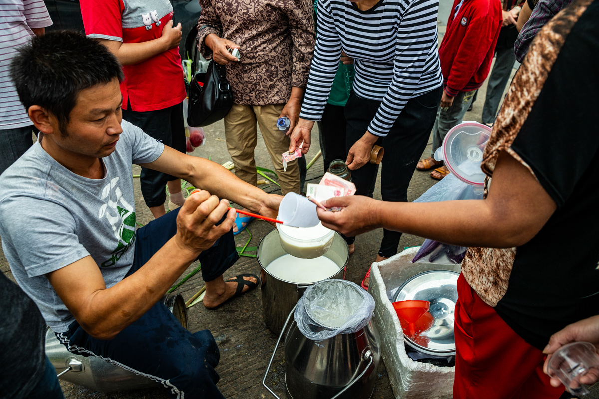 本組照六幅反映了人們對(duì)食品安全的擔(dān)憂,特別是牛奶摻水現(xiàn)象的顧慮,奶農(nóng)采取現(xiàn)場擠現(xiàn)場賣的方式吸引了居民的購買熱情,也消除了大家對(duì)信任的危機(jī)。
