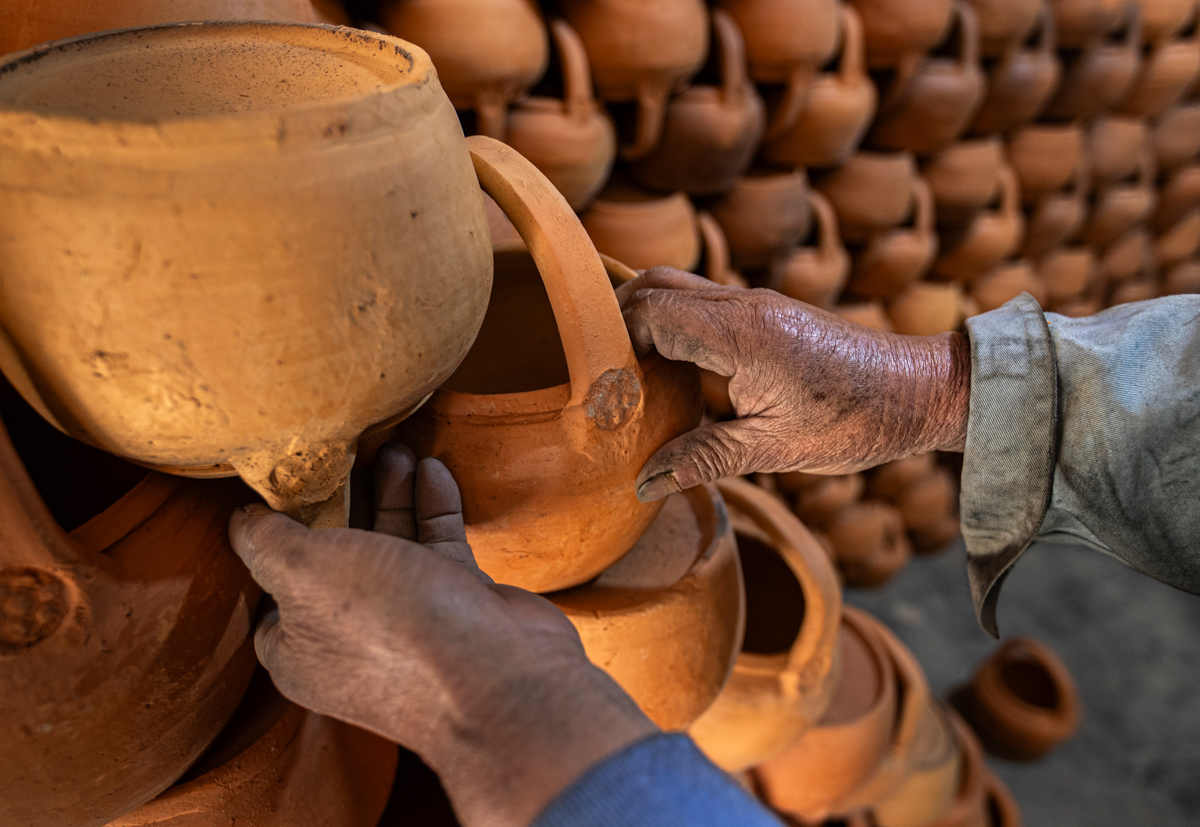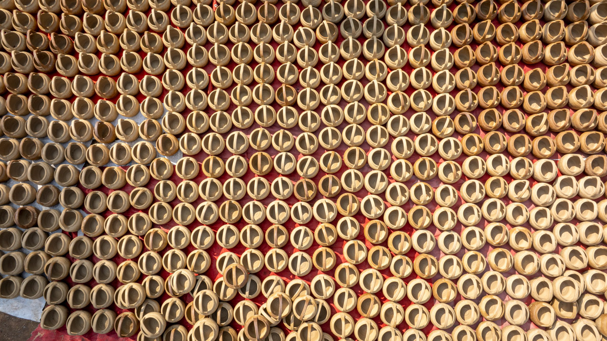 火籠,三門土話,是一種用泥土手工加工經(jīng)過窯燒出品的盛碳火取暖的用具。顏色棕紅色,預(yù)示紅紅火火。
