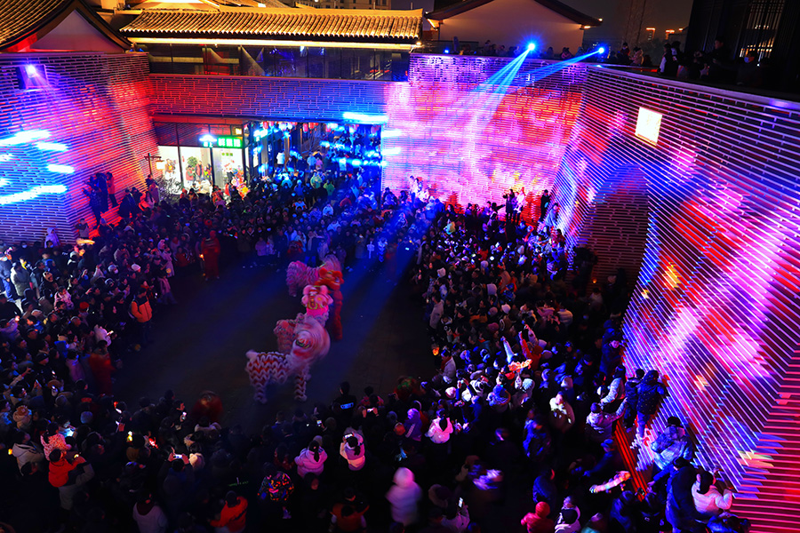 2024年2月23日是浙江臺州元宵節(jié),天臺縣老城赭溪老街城門里,2對獅子在表演節(jié)目,慶賀祖國國泰民安,龍年風(fēng)調(diào)雨順,為元宵佳節(jié)增添喜慶。
