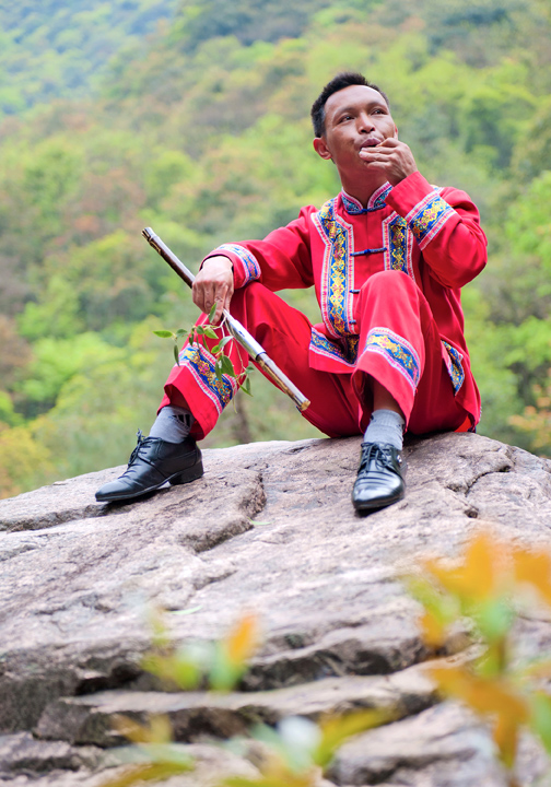 畬族青年用樹葉吹奏樂曲,向異性傳情。