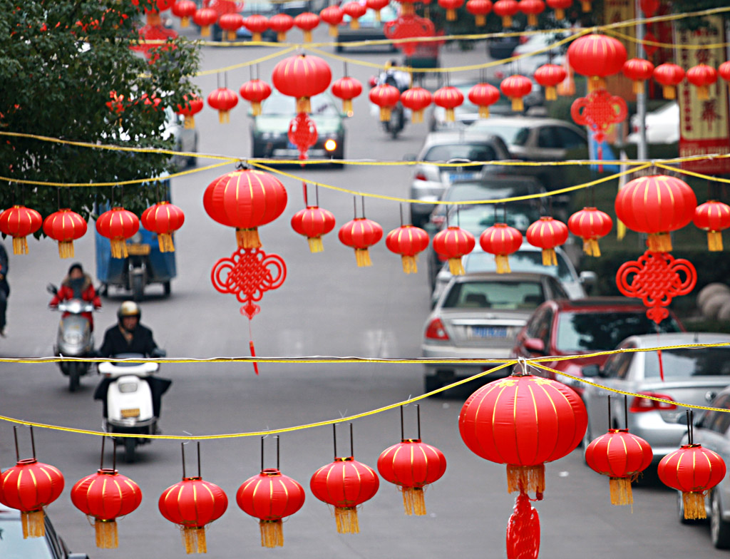 節(jié)日到來,街頭掛滿紅燈籠。