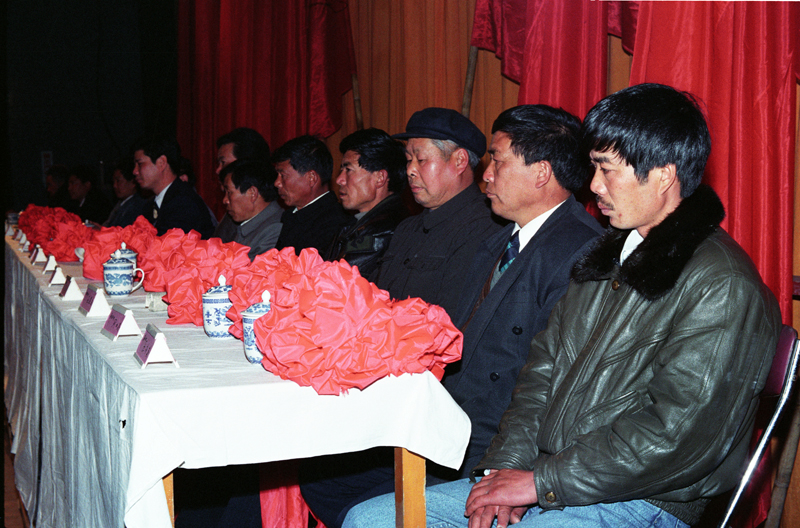 返回頂部>> 照片說(shuō)明:  政府大力鼓勵(lì)發(fā)展民營(yíng)企業(yè)(那時(shí)候稱作“鄉(xiāng)鎮(zhèn)企業(yè)”),在椒江區(qū)的經(jīng)濟(jì)工作會(huì)議上,一批辦廠能人受邀坐主席臺(tái),戴大紅花。