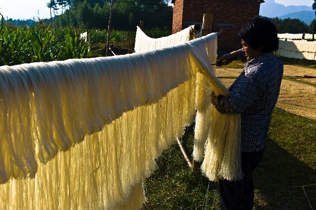 呂橋頭有自己的特色,他們歷史以來都盛產(chǎn)紅糖,村頭至今還保留著榨糖的工具,幾噸重的榨糖石,相互凹突,想想當(dāng)時這樣的榨糖工藝在周邊的村是少見的。如今榨糖已不做了,十元一斤的紅糖價格讓村里人都不種植甘蔗了,以至于傳統(tǒng)的榨糖設(shè)備躺在村頭,無人問津。呂橋頭米線也是一流的,大凡縣城里的人都要趕到這里來買,這里的米線口感好,順滑,不粘口,品質(zhì)優(yōu),做湯面和炒面都是極佳的上品。我們一行人都買了十幾斤帶回品嘗,人人稱贊叫好。