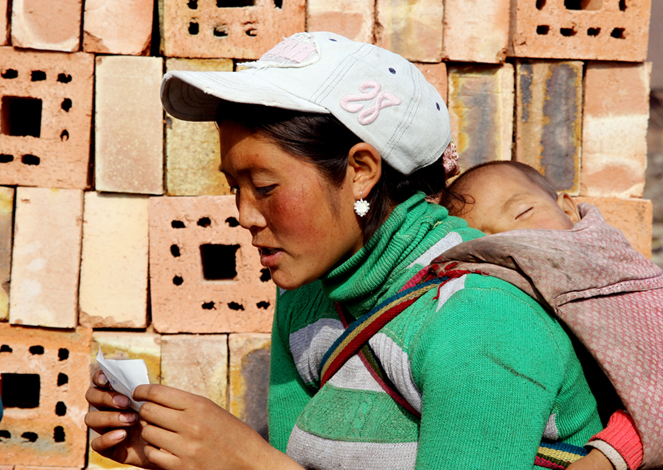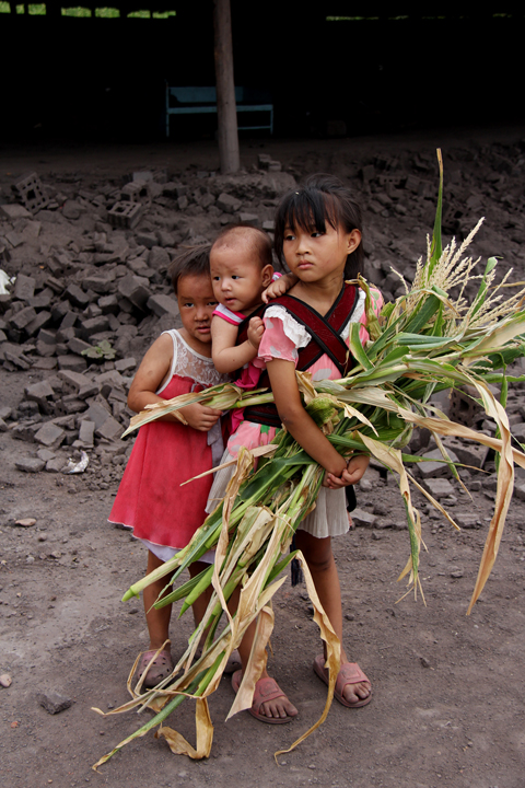 5月12日,我們一群人又十分好奇地去了磚瓦廠,帶了些小玩具、食物分給他們。孩子們大都沒有讀書,這次膽大多了,還高高興興地帶我們參觀了他們的領(lǐng)地后山坡和池塘,顯得單純友好、天真可愛(01圖)。7月21日我們又去了,孩子們一陣瘋玩之后(02圖)又帶我們參觀了他們最高級的現(xiàn)代化學(xué)習(xí)用具——電腦(03圖),自豪地講述他們的學(xué)習(xí)、繪畫。此時門外突然出現(xiàn)一個七八歲女孩子,背了個一二歲的孩子,后面還跟了個四五歲的孩子,手里拿著玉米桿,神情嚴(yán)肅,擺出一副要保護(hù)弟妹的架勢,讓人好笑又生憐憫(04圖),窮人的孩子早當(dāng)家哎!此后的幾次走訪,都見女孩子們自己洗衣洗鞋洗書包,還要照顧弟妹(05.06.07.08圖),真不簡單啊。男孩子不怕臟、不怕累,泥土地上玩著、滾著,永遠(yuǎn)使不完的勁(09.10圖)。于是我想孩子們身上弄臟了沒什么了不起,開心就好,童趣寶貴。他們當(dāng)中有幾個學(xué)習(xí)成績非常好,也很用功,在就近小學(xué)讀書(14.15圖)。2014年的冬天,又見他們的衣服少而臟,光腳丫跑來跑去,鼻涕直流(08.11.12圖),好不可憐。于是我們有人送去了衣服,食品讓他們在衢州的土地上覺得冬天不太冷。