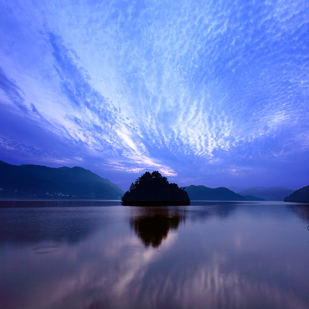 清晨,黃巖長(zhǎng)潭水庫的情人島
