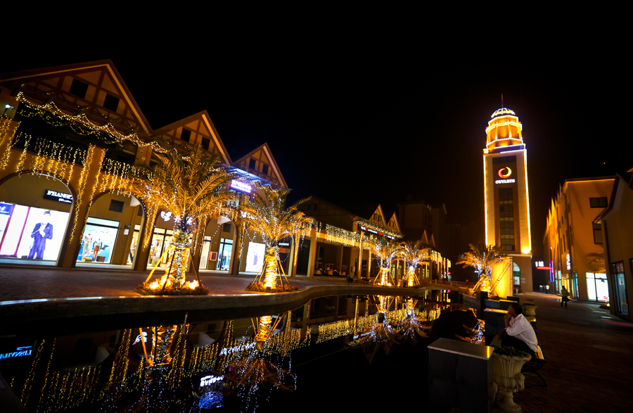 夜晚,是奧特萊斯最美的時(shí)候,燈光水面交相輝映。