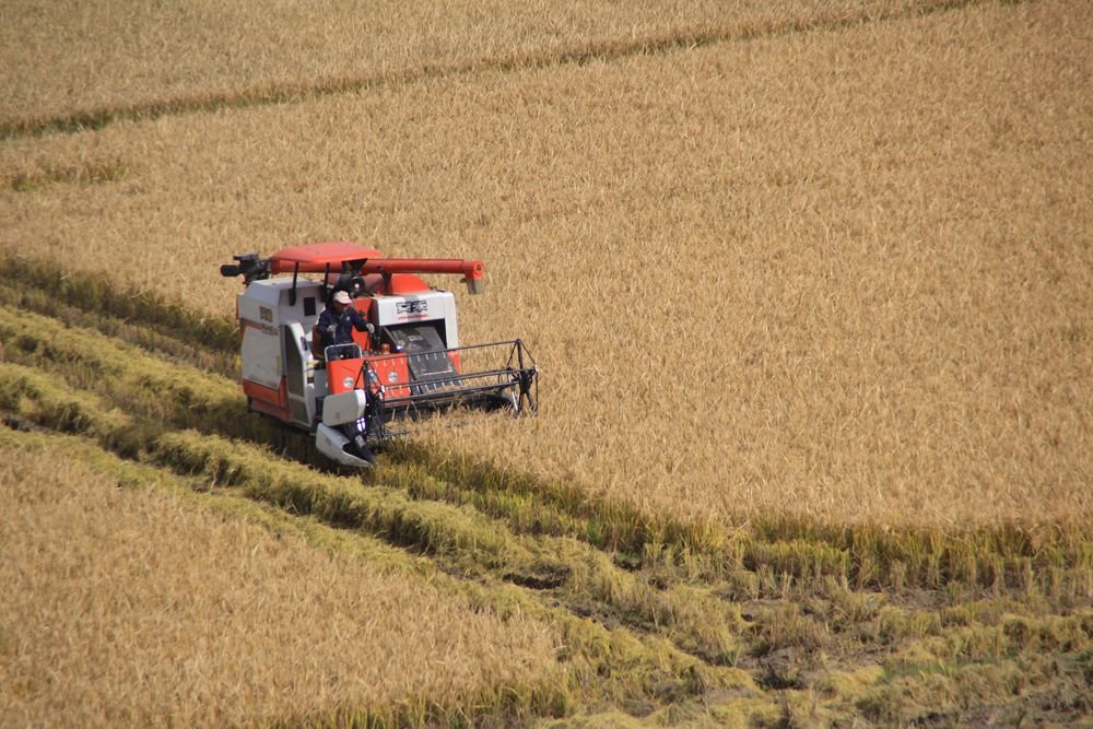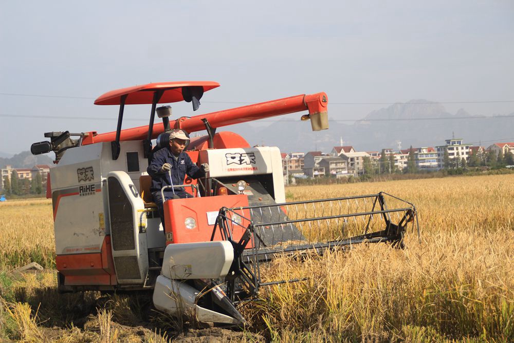金色稻田,是金色的希望。稻田中行駛的收割機(jī),好像在肥沃的土地上耕耘。輪機(jī)飛轉(zhuǎn),粒粒歸倉。春華秋實(shí),給人滿心歡喜,那是農(nóng)家的節(jié)日,那是沉甸甸的收獲。
