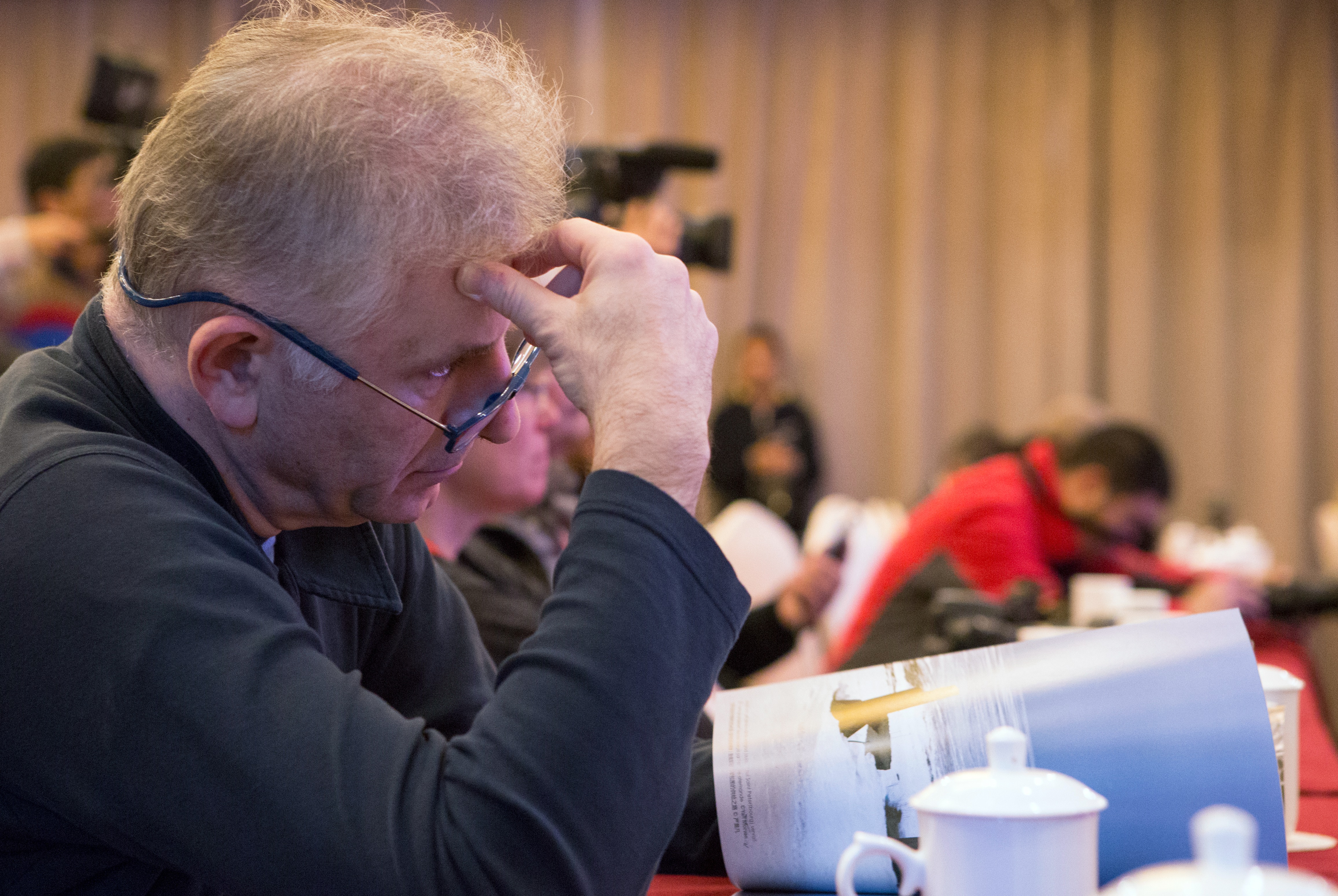 外籍攝影人在凝視照片(拍攝地點)麗水國際大酒店(拍攝時間)2015年11月10日