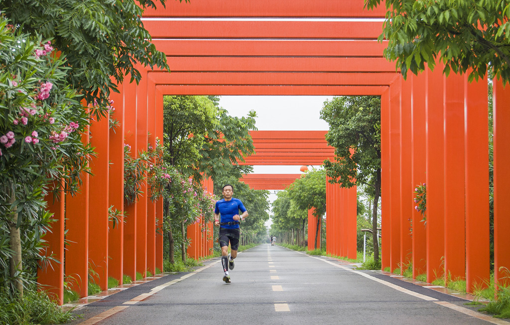 返回頂部>> 照片說明: 黃巖綠道上的跑步者