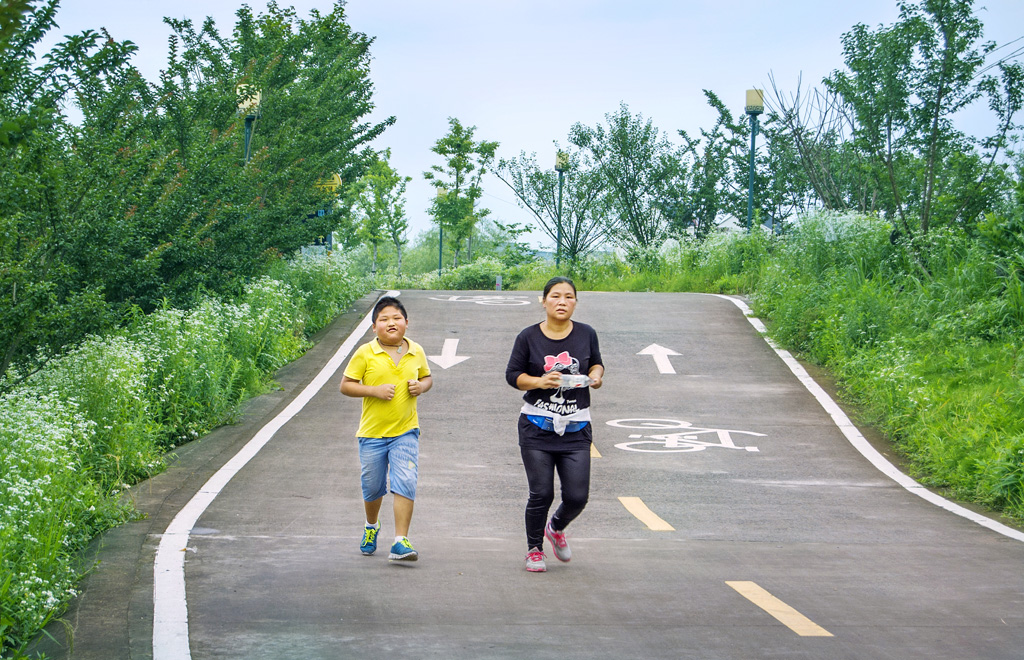 返回頂部>> 照片說明: 黃巖綠道上小跑的母子