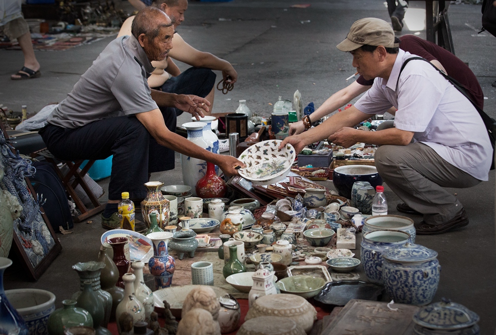 而古玩地攤市場則可追溯至百年前的鬼市,因為在夜間至次日清晨交易而得名。當(dāng)時的文物來源不一,既有從民間收購得來,也有通過盜墓、偷盜等非法途徑得來,各種真品、贗品混雜其中。因此在當(dāng)時的歷史環(huán)境下,“撿漏”有其合理性的一面。但是近年來的地攤市場其實已不再具備如此的歷史條件。業(yè)內(nèi)人士表示:逛地攤千萬不要抱著“天下的好東西只有我知道”的心態(tài),否則你水平高,買高仿,水平低,買低仿。