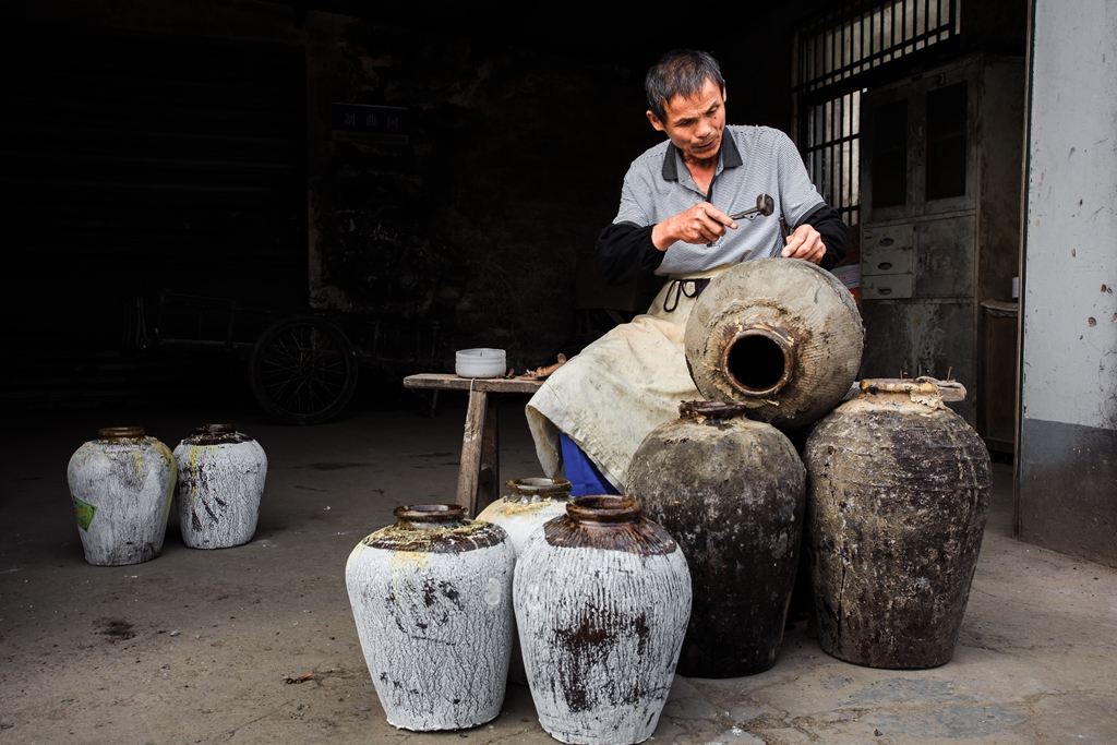 返回頂部>> 照片說明: 傳統(tǒng)釀酒離不開用陶泥做的酒壇,便離不開補(bǔ)壇工。但如今肯學(xué)修補(bǔ)酒壇技藝的年輕人極少,從事補(bǔ)壇行業(yè)40多年的陸興海,已65歲,但補(bǔ)壇技藝仍后繼無人。