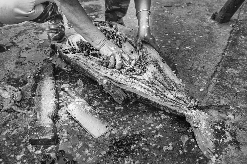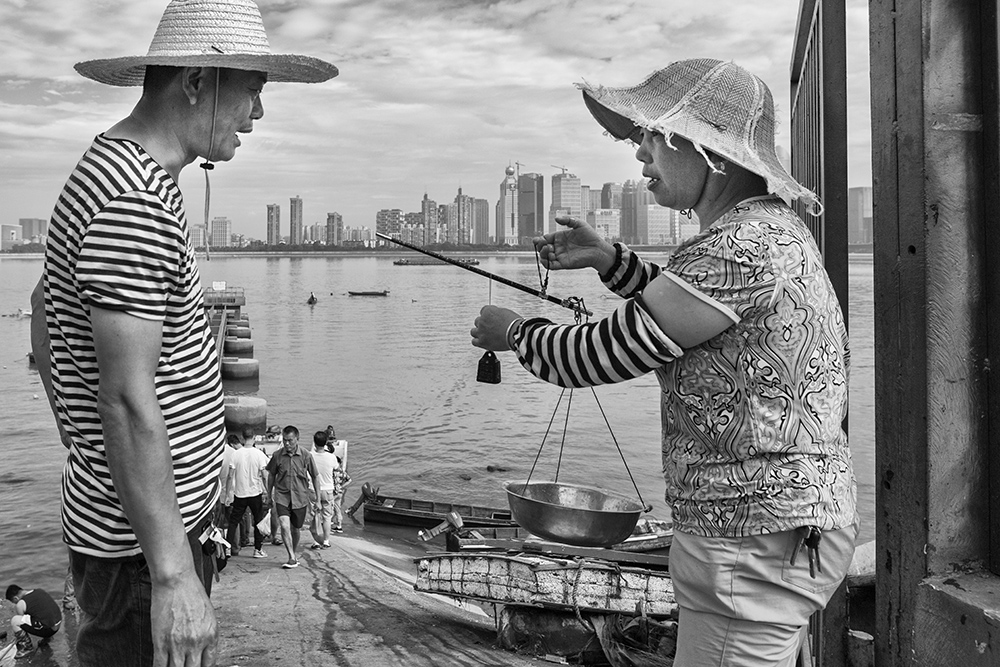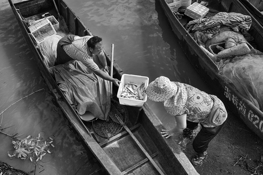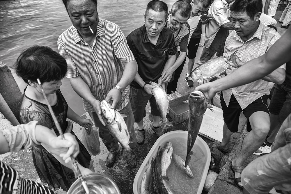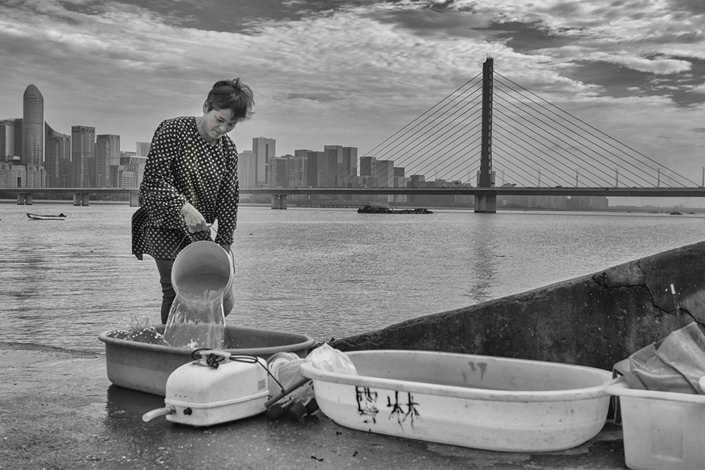 在美麗的錢塘江南岸,位于三橋附近的汽渡碼頭,每天有沿江漁民在這里下江捕魚,上岸停船,賣魚補網(wǎng)。去年,迎G20峰會,修筑了一條最美跑道,橫貫一橋四橋三橋。這下,錢塘早上魚市的人氣就越發(fā)旺盛了。漁夫深夜出船,漁婦清晨盼歸;錢塘歸來魚兒跳,買家上前挑魚躍;捕魚賣魚往往都是夫妻檔,晨練賞光常常是鐵桿買家;一邊是自產(chǎn)自銷滿心歡;一邊是野生鮮活美味樂。
