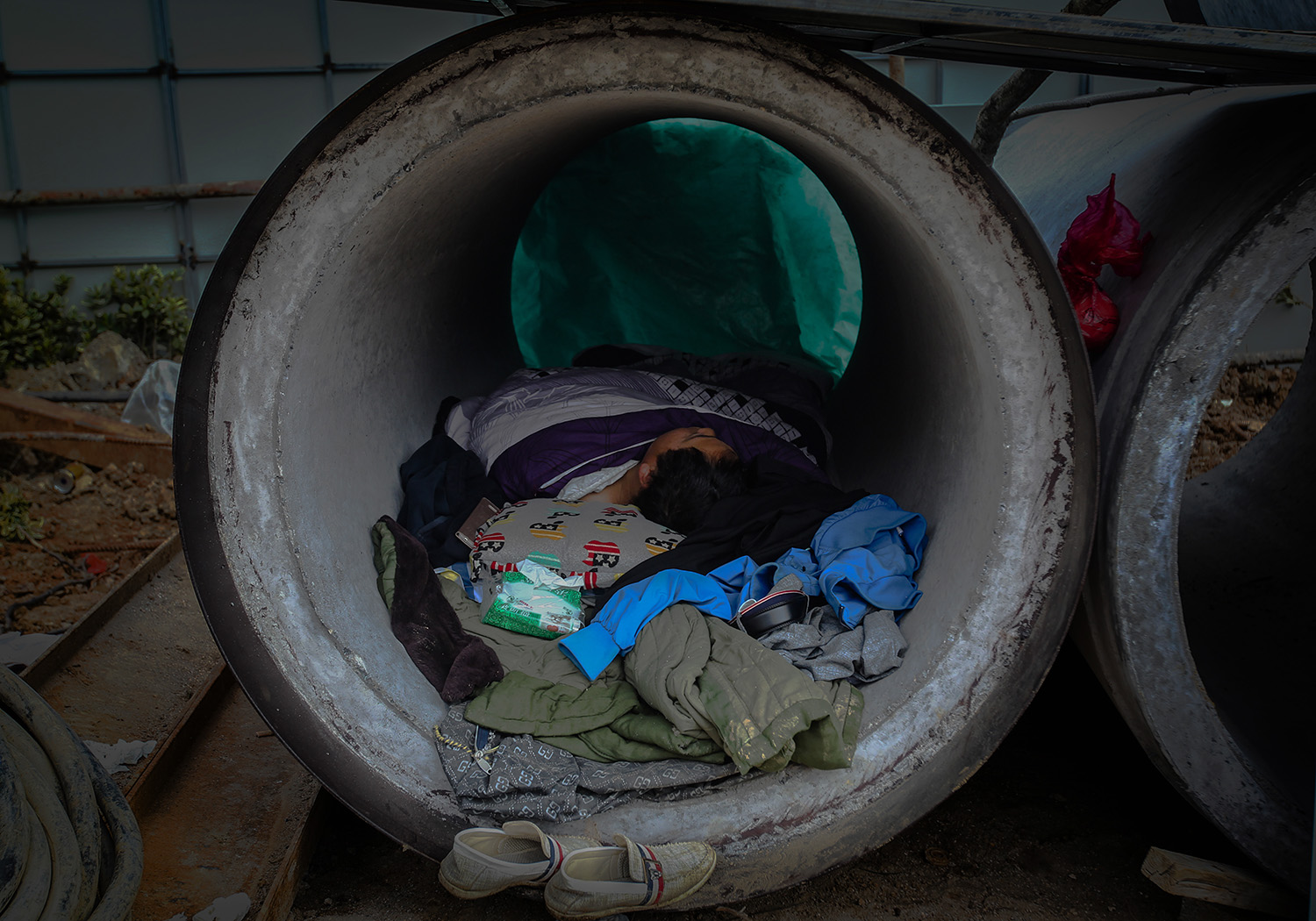 返回頂部>> 照片說明: 有時(shí)吃住都在管道里。