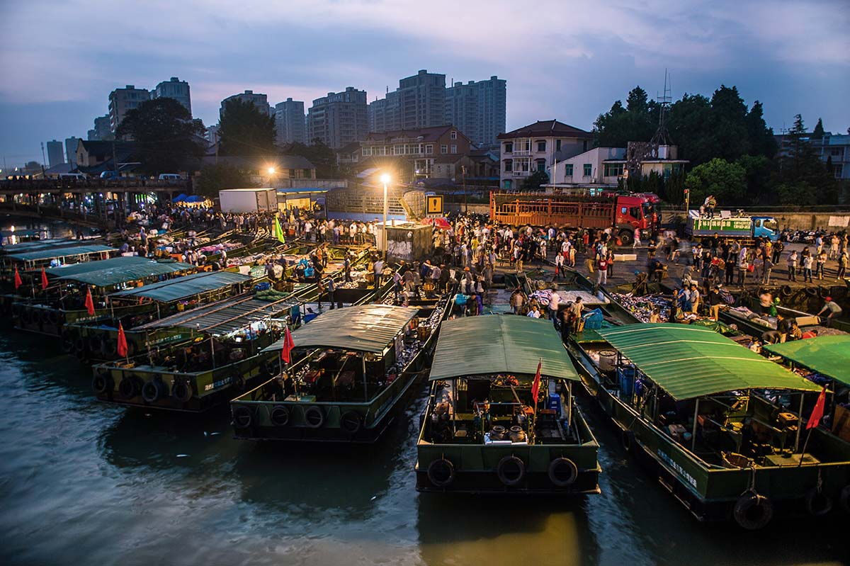 作品介紹: 太湖捕魚(yú)記 攝影/吳拯 9月1日,陽(yáng)光和煦,在結(jié)束了7月的休漁期之后,太湖秋汛的大幕緩緩拉開(kāi)。長(zhǎng)興縣新塘村港口,爆竹聲聲,一艘艘漁船正緩緩駛向太湖。 清晨7點(diǎn)多的碼頭上,51歲的殷新榮一面拎著兩桶礦泉水疾步踏上一艘漁船,一面回頭沖著一同出船的伙計(jì)高呼“老沈,老鄒!快點(diǎn),出船咧!” 為了能趕在8點(diǎn)準(zhǔn)時(shí)出船,殷新榮早上6點(diǎn)就起床準(zhǔn)備,裝柴油、備籃筐、拎礦泉水、買(mǎi)柴米油鹽……做好了萬(wàn)全的準(zhǔn)備后,8點(diǎn)整,殷新榮的船頭響起了象征吉祥的鞭炮,開(kāi)始了他秋汛開(kāi)捕的第一網(wǎng)。 “今年太湖水位漲了5公分左右,魚(yú)量應(yīng)該會(huì)多一些!苯3個(gè)小時(shí)的航行中,殷新榮顧不得強(qiáng)烈的湖風(fēng),不時(shí)留意著水位和風(fēng)向,言語(yǔ)中也滿是“盆滿缽滿”的期待。 臨近中午的湖面,波光瀲艷!袄弦!收魚(yú)嘞!”不遠(yuǎn)處,一艘捕魚(yú)船漸漸湊了過(guò)來(lái)。殷新榮掃了一眼,便一臉笑意地跳了上去:“湖風(fēng)偏北,魚(yú)群易聚,有戲!” 隨著龐大的漁網(wǎng)以拋物線的弧度下水后,兩艘捕魚(yú)船慢慢地將漁網(wǎng)拉開(kāi)成一個(gè)方圓2公里的圓圈。待漁網(wǎng)完全拉開(kāi)后,捕魚(yú)船上的漁民們便持續(xù)重復(fù)拉網(wǎng)收網(wǎng)動(dòng)作10余次,慢慢收緊漁網(wǎng)。隨后過(guò)船、裝運(yùn)、稱重、分類……十幾分鐘的緊張忙碌之后,殷新榮成功收購(gòu)了江蘇漁民的4000斤鮮魚(yú)!袄相u,也到中午了,你殺幾條魚(yú),趕緊把午飯做了!”殷新榮一邊囑咐伙汁,一邊忙著再碎一塊冰,覆蓋在魚(yú)上,保證晚上回去時(shí),魚(yú)還新鮮著。 約摸半小時(shí)后,老鄒端上一鍋香噴噴的紅燒魚(yú)。新鮮的太湖魚(yú),就著這如畫(huà)的湖光山色,一頓美餐就在船上簡(jiǎn)單地解決了。勁道的湖風(fēng)撫摸著午后的太湖,碧波蕩漾的湖面猶如一塊巨型祖母綠寶石,光澤耀眼。兩個(gè)小時(shí)的小憩,讓殷新榮和伙計(jì)們一掃疲倦,精神抖擻地等待漁船靠近,開(kāi)始收第二單魚(yú)。 “因?yàn)榻裉焓堑谝惶扉_(kāi)捕,所以量比較少,共收了8000斤不到,明天估計(jì)就得勁兒了!”老殷笑著說(shuō)。收完了兩單魚(yú),再返回碼頭的時(shí)候,已經(jīng)將近下午6點(diǎn)。 此時(shí)的新塘漁港早已是人鼎沸騰,一片熱鬧景象。百余艘太湖捕撈船、水產(chǎn)運(yùn)銷船陸續(xù)進(jìn)港,挑魚(yú)夫們馬不停蹄地將魚(yú)兒挑運(yùn)上岸,等候多時(shí)的市民和小販們爭(zhēng)先恐后上船搶購(gòu)鮮魚(yú)。據(jù)漁政部門(mén)預(yù)測(cè),新塘港口每天到港鮮魚(yú)逾60萬(wàn)公斤,每年為期近一個(gè)月的開(kāi)捕季將為每戶漁民帶來(lái)十多萬(wàn)元收入。