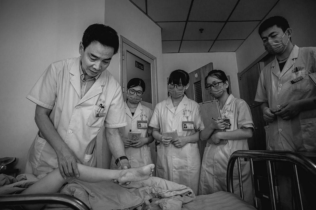 返回頂部>> 照片說(shuō)明: 院長(zhǎng)親自帶醫(yī)生們來(lái)查房,建議她去拍個(gè)片,看能否動(dòng)手術(shù)。