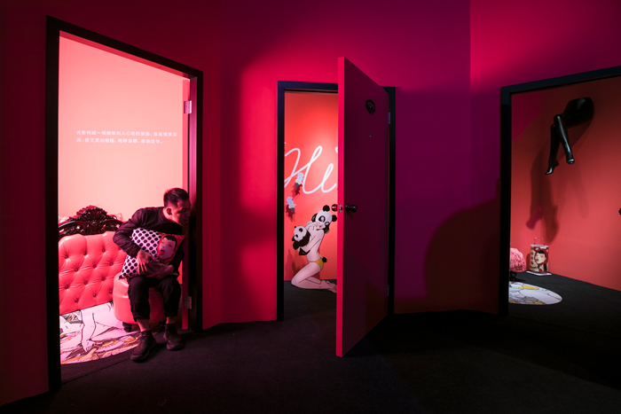 008:《不如我們來睡一覺》廣州人愛吃,所以源于廣州的“睡一覺”一直表現(xiàn)出對食物題材的關(guān)注,“饞”可以形容人“食色”之本性和“貪瞋癡”之欲。最近,黃薇把自己的藝術(shù)周邊搬到了淘寶上,各種茶盤、手機殼皆以“食色”為主題,大膽的造型和張揚的色調(diào),毫無保留地刺激著觀者。