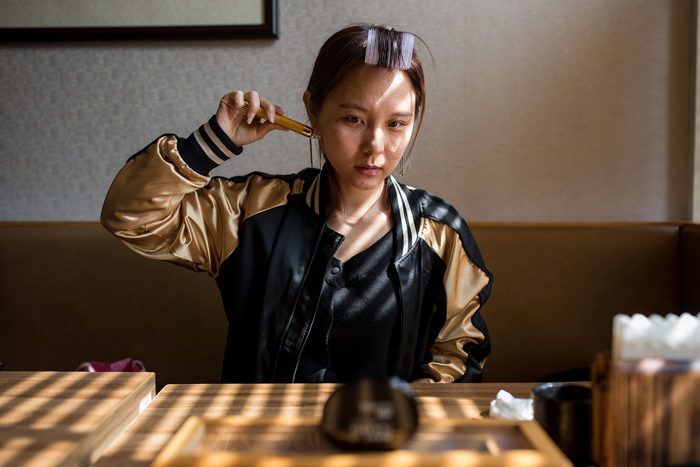 返回頂部>> 照片說明: 8;石喵喵在拍攝前整理妝容