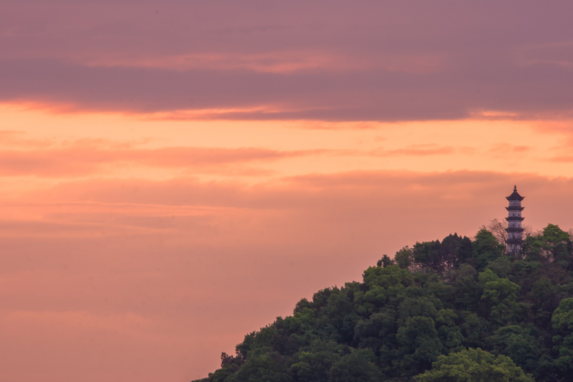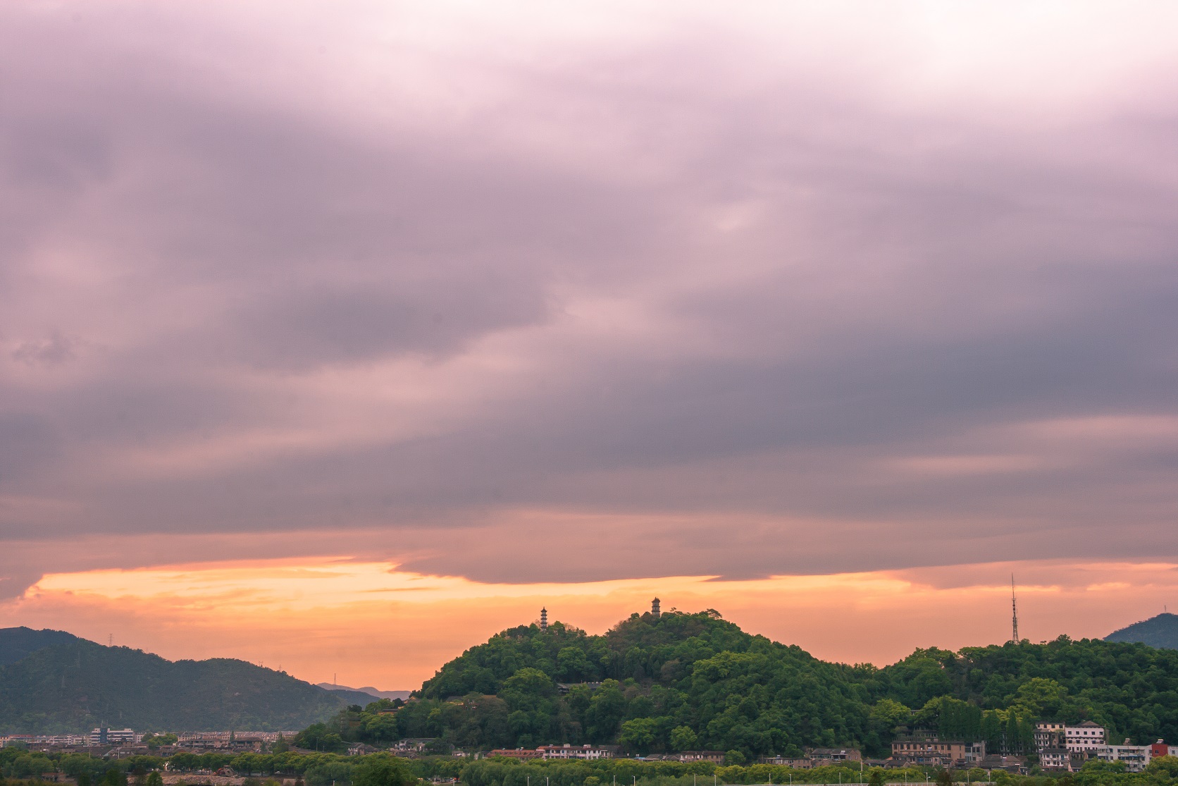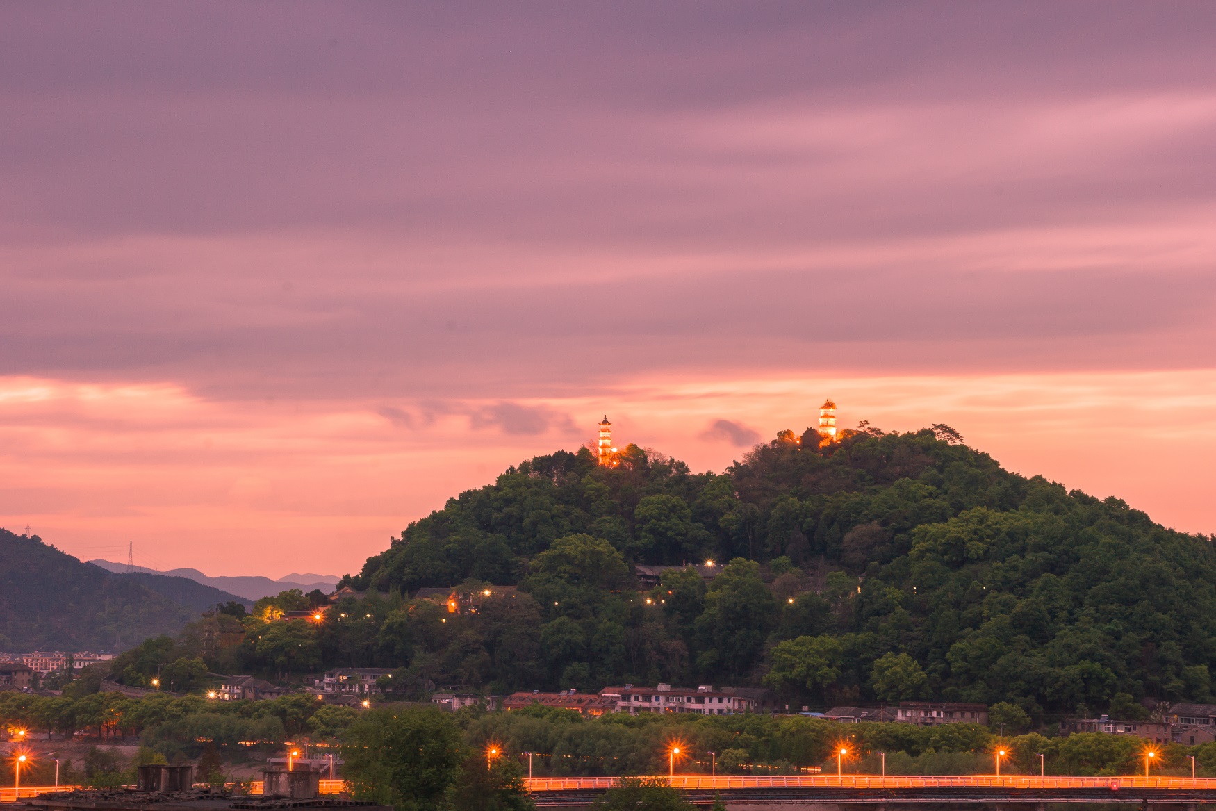 夕陽西下的臨海巾山