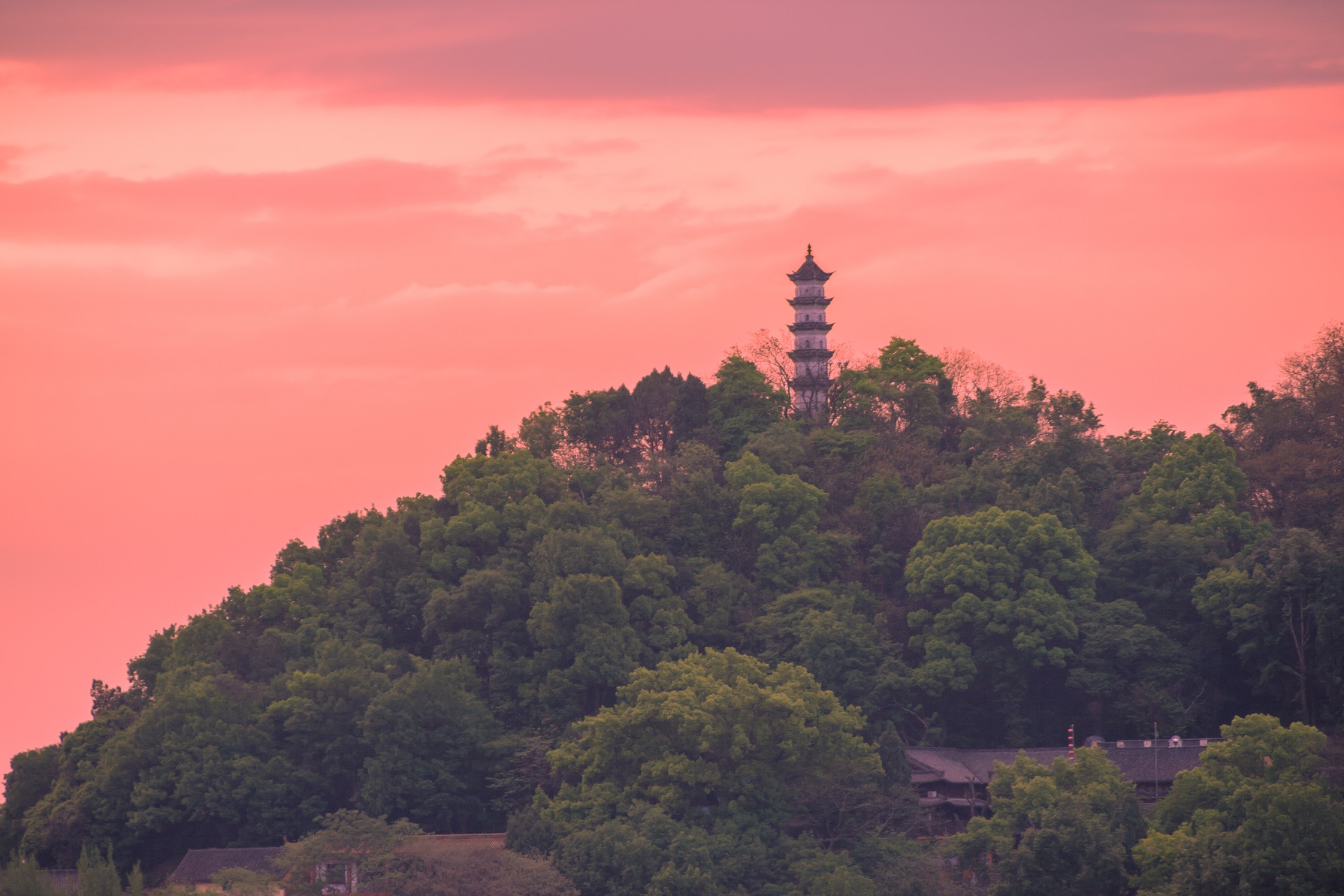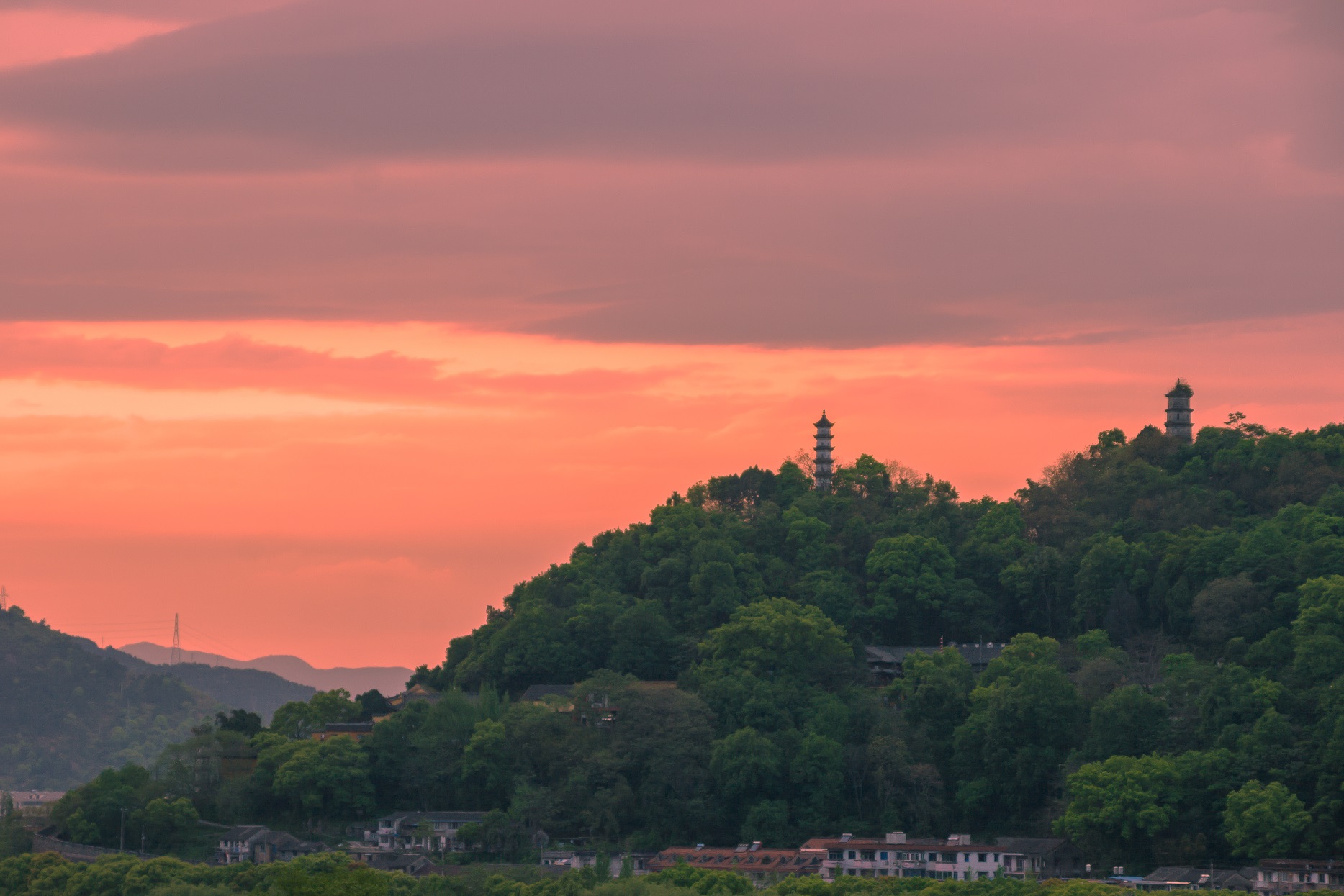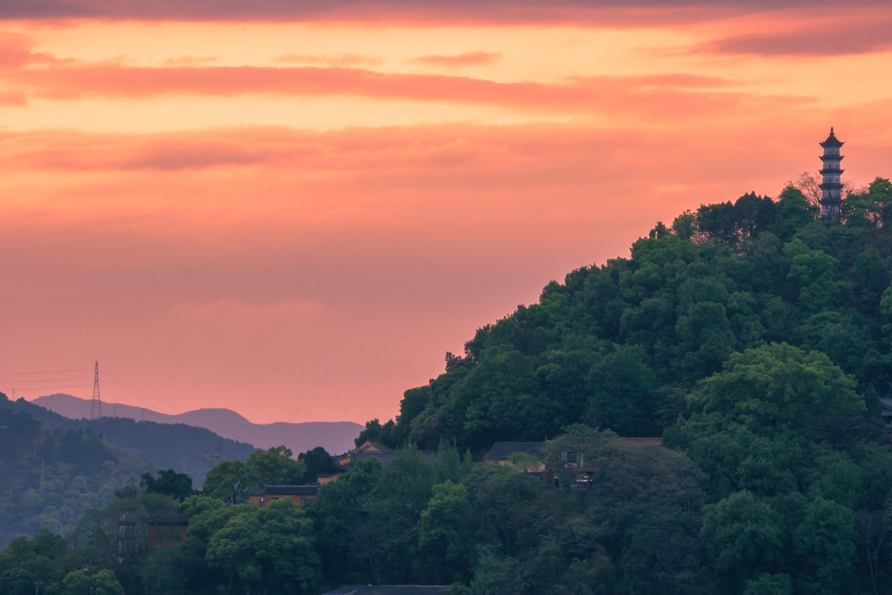 夕陽西下的臨海巾山