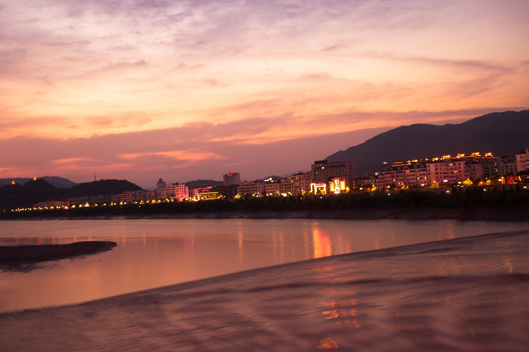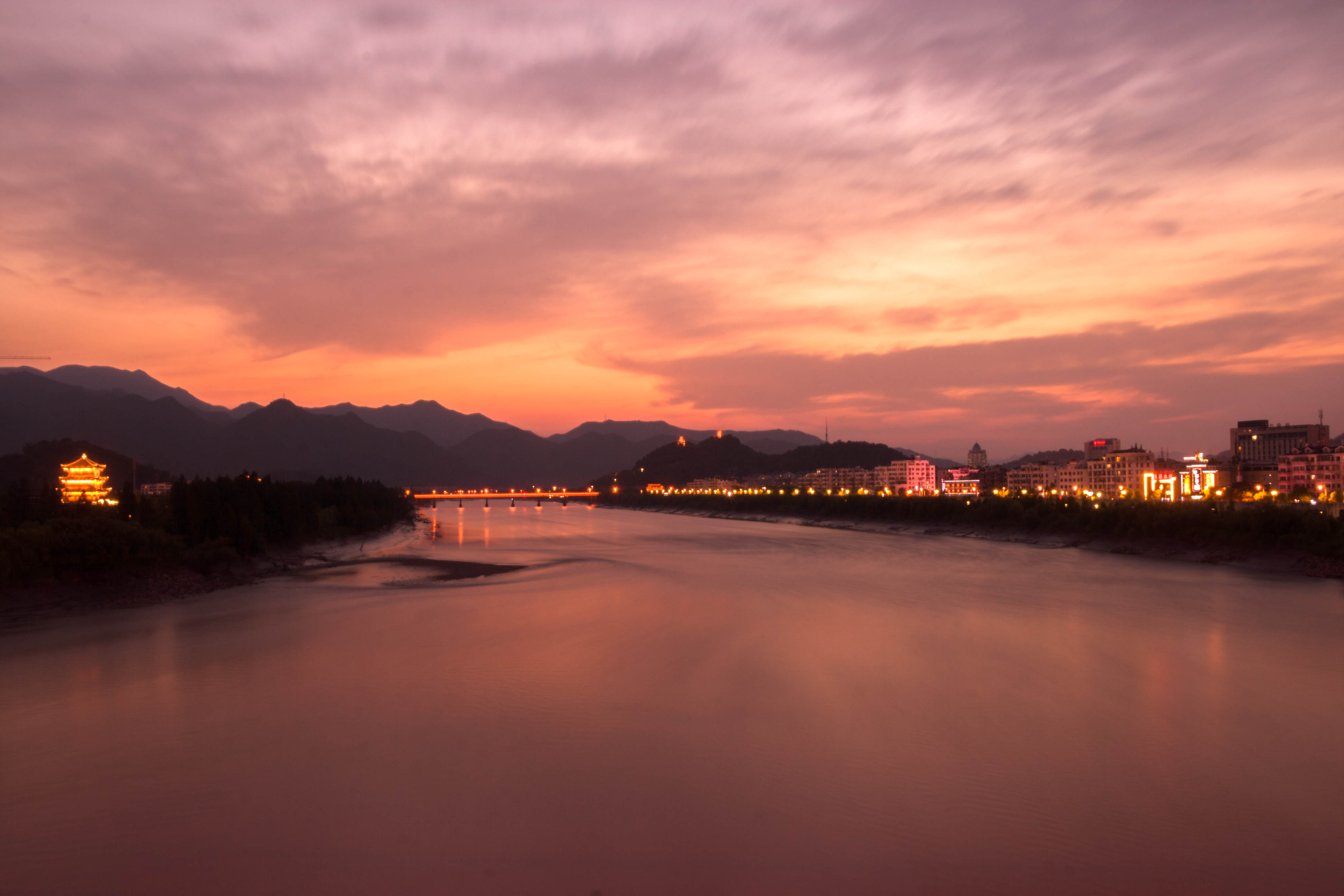 夕陽(yáng)西下的靈江