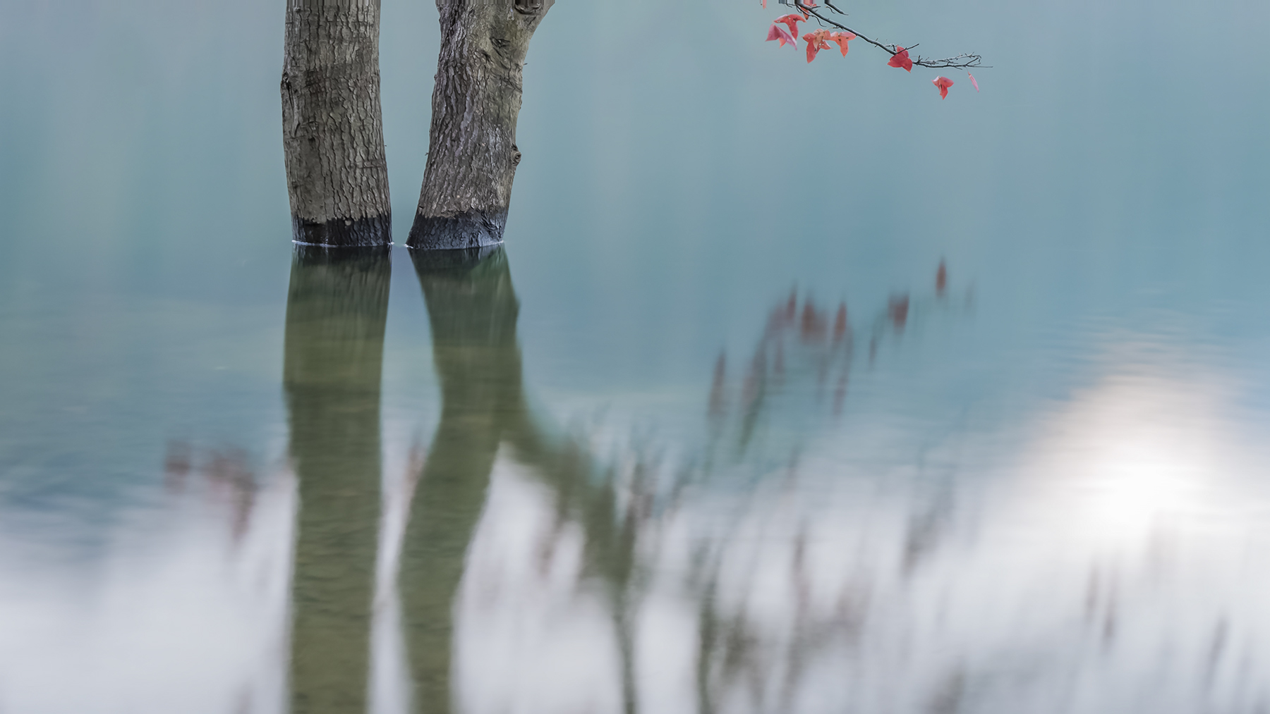 作品介紹: 深秋初冬時(shí)節(jié) 樹葉艷紅欲滴,最絢爛的它預(yù)示著最傷感的凋零,樹樹秋聲瑟瑟 枝枝水中妖嬈 這聲這色 都埋藏著一點(diǎn)點(diǎn)悲傷,一點(diǎn)點(diǎn)寧?kù)o 一點(diǎn)點(diǎn)幻想 一點(diǎn)點(diǎn)情思.....
