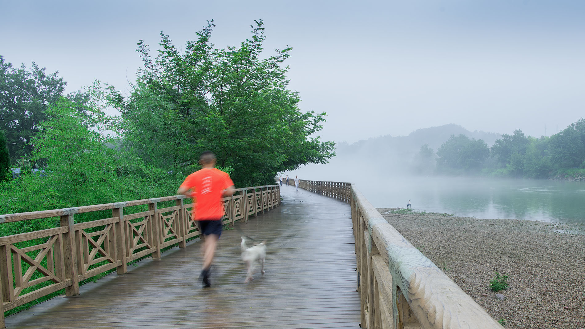 作品介紹: 仙居綠道濱水而建, 風(fēng)光旖旎, 被人民網(wǎng)贊“江南喀納斯 ”,是目前唯一獲得住建部“中國人居環(huán)境范例獎”的綠道,宛如一條環(huán)繞仙居母親河永安溪的綠絲帶,為仙居市民提供了一條鍛煉身體 綠色騎行的美麗景觀廊道,真的是一條造福人民,人與自然和諧共處的美麗綠絲帶。今年六月的清晨 我去綠道跑步 永安溪上水霧茫茫 綠道上有的騎行 有的健走 有的跑步 宛如仙境。