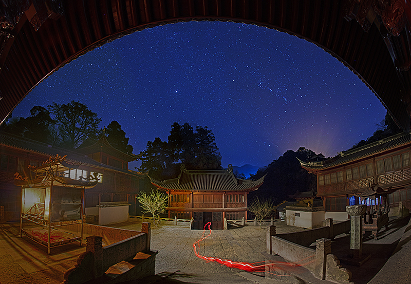 石梁古剎星夜