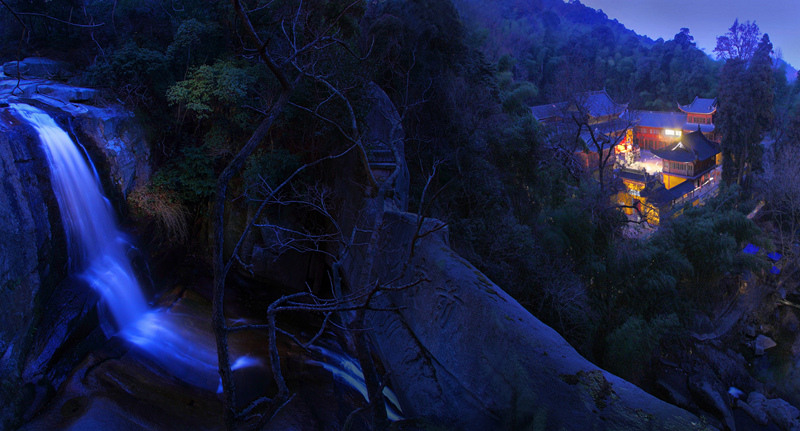 石梁幽谷飛瀑夜