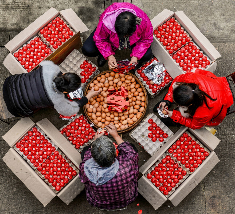 溫領(lǐng)一帶農(nóng)村家有喜事時(shí)要包紅喜蛋分給親朋好友的習(xí)俗。