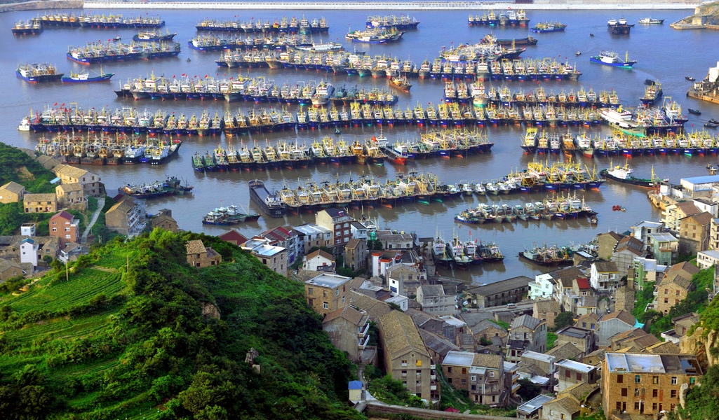 改革開放以來,溫嶺的漁業(yè)發(fā)生了很大的變化,捕魚業(yè)從原來的小木船、機帆船發(fā)展到鋼質(zhì)漁輪,對發(fā)展?jié)O業(yè)和保障漁民的安全起到積極參與的作用。這是禁漁期漁輪停泊在石塘避風港內(nèi)。