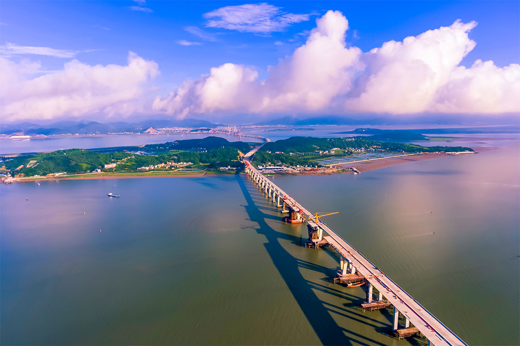樂清灣垮海大橋連接臺州玉環(huán)市和溫州樂清市兩岸,全長38.147公里,總投資103.87億元,建成通車后將提升甬臺溫高速公路運輸能力,促進浙江沿海經(jīng)濟區(qū)的發(fā)展起到了重要作用.