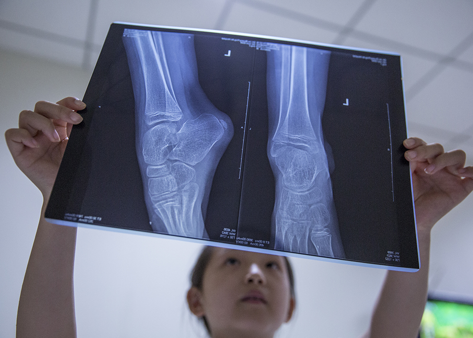 作品介紹: 韓鈺麟、貴州省赫章縣,父母離婚。12歲,不幸患硬皮病。什么叫硬皮病?硬皮病會使肌肉直接萎縮到骨頭里,很恐怖吧!這種病至今仍是個世界難題。小鈺麟是三歲那年得的這病,當時腳上發(fā)現(xiàn)一塊硬幣大小的,不痛不癢也沒在意。誰知過了幾個月,一大片肌肉就萎縮了。奶奶帶她去醫(yī)院看病,開了藥回來吃,一邊吃一邊仍在不斷萎縮。找了好幾家醫(yī)院都無法控制病情,如今兩條腿上全是,左右已經(jīng)完全變形了。直到2016年經(jīng)人介紹去了石家莊平安醫(yī)院,病情總算控制住,但是費用是個大問題。別的患者都打肝細胞、可韓鈺麟家哪打得起這么貴的,就是普通的藥品一年也要5一6萬,這對一個貧困家庭來說無疑是個天文數(shù)字。我想用影像記錄下這么一個聰明漂亮的小女孩,希望有更