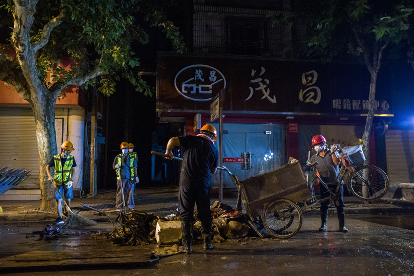 2019.8.15凌晨,古城街道回浦路上清理工作依舊繁忙。