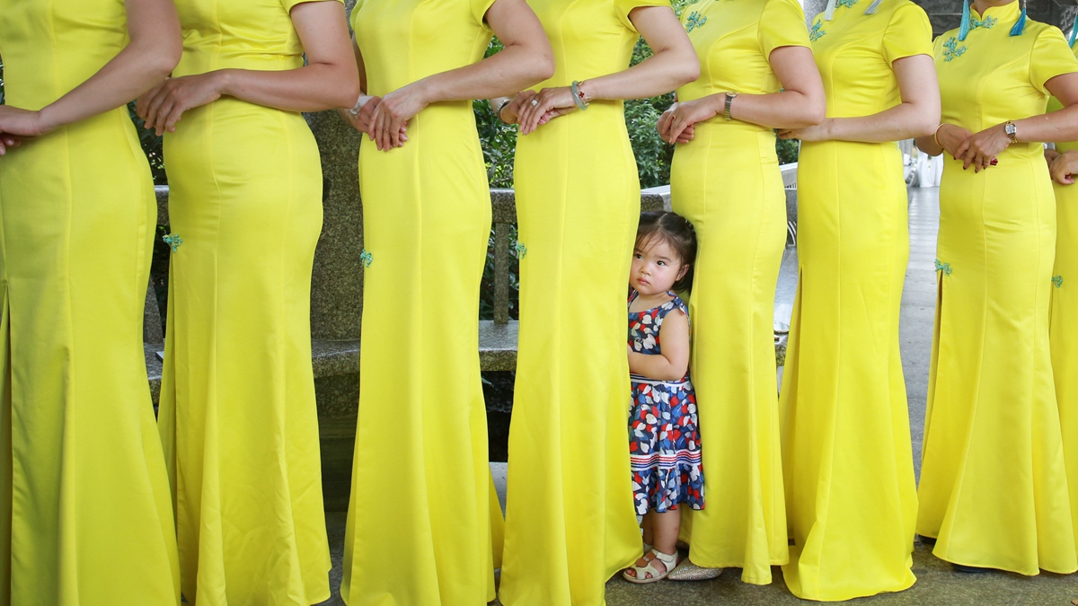 作品介紹: 浙江省溫嶺市城北街道,好奇的孩子夾在旗袍秀的阿姨中間。