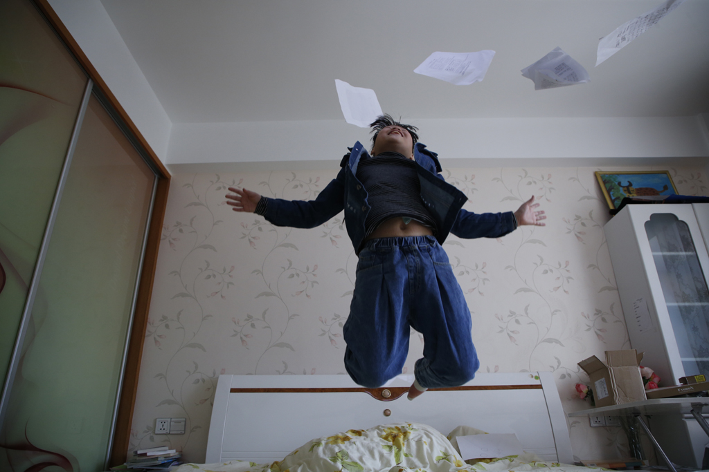 疫情結(jié)束,不再上網(wǎng)課,小逸在床上高興地跳了起來