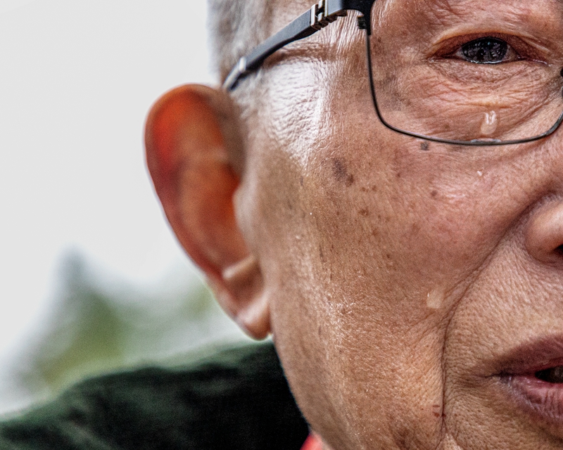 當(dāng)看到戰(zhàn)役中犧牲的戰(zhàn)士照片時,一下子淚流滿面,久久說不出話來。