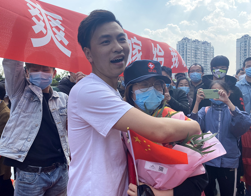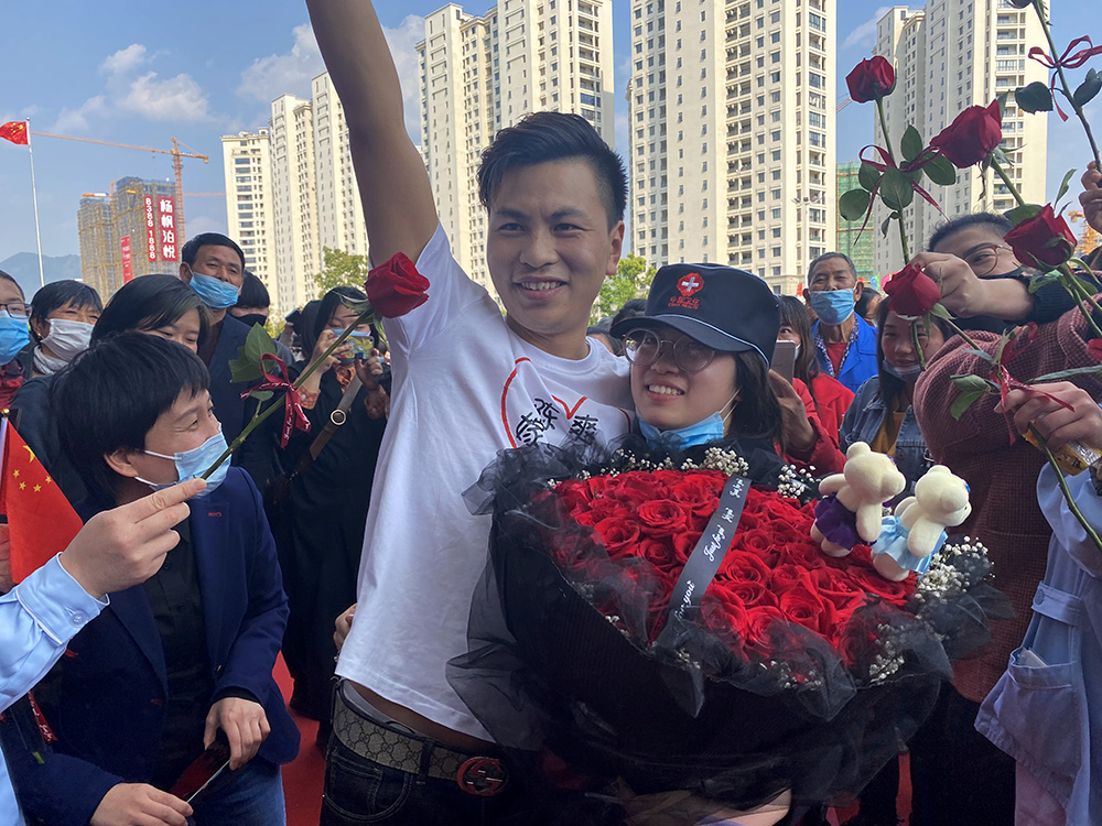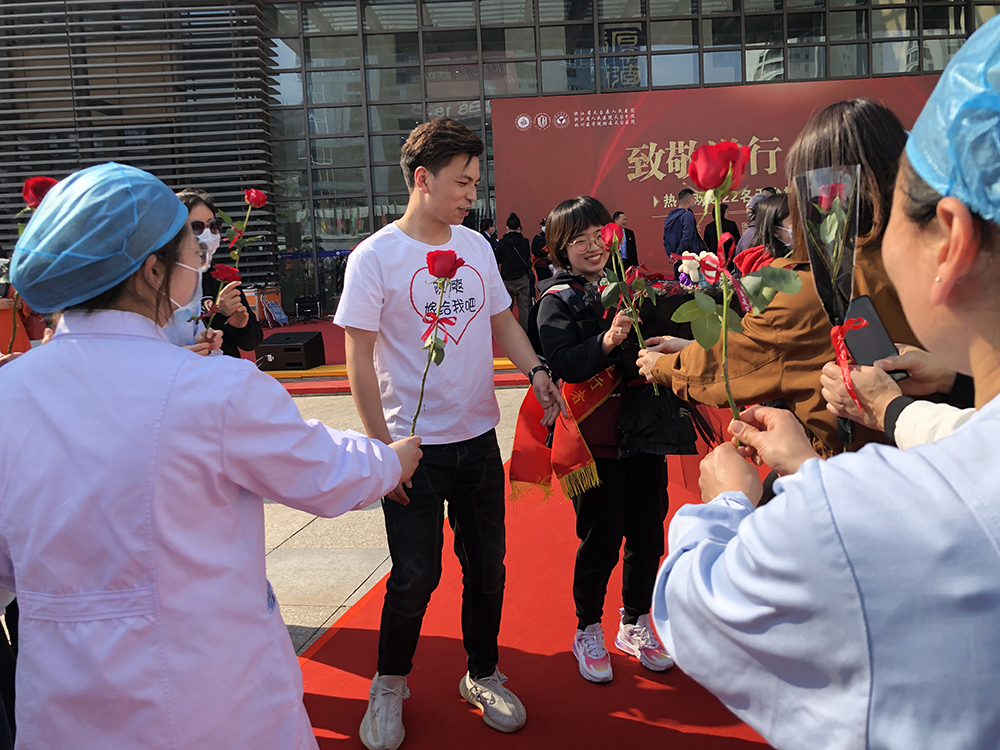 作品介紹: 天臺(tái)援鄂醫(yī)療隊(duì)護(hù)士陳爽小姐載譽(yù)歸來(lái)的歡迎現(xiàn)場(chǎng),遭遇男朋友的求婚,幸福滿(mǎn)滿(mǎn),祝福滿(mǎn)滿(mǎn)!