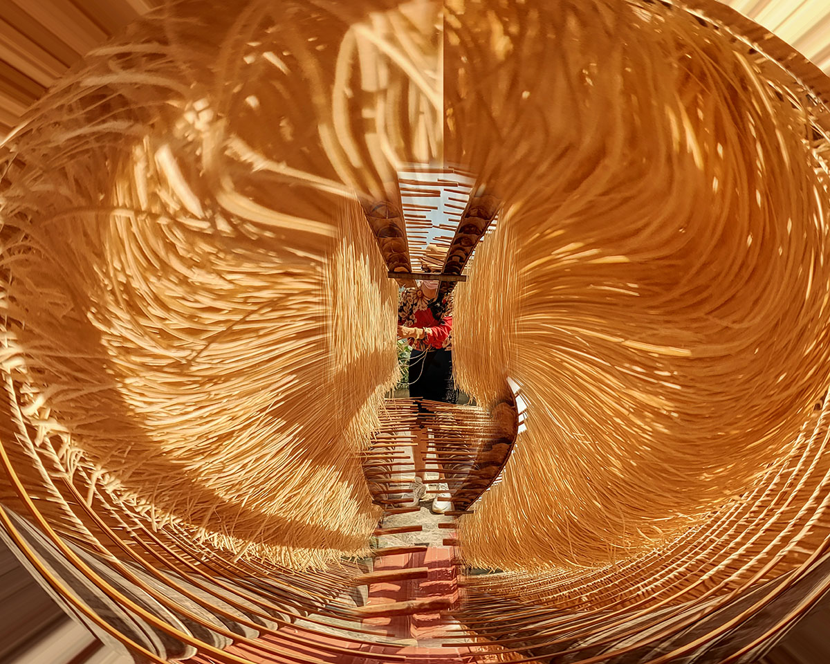 掛曬的面條轉(zhuǎn)轉(zhuǎn)轉(zhuǎn),享受它帶給我們不一樣的視覺沖擊。