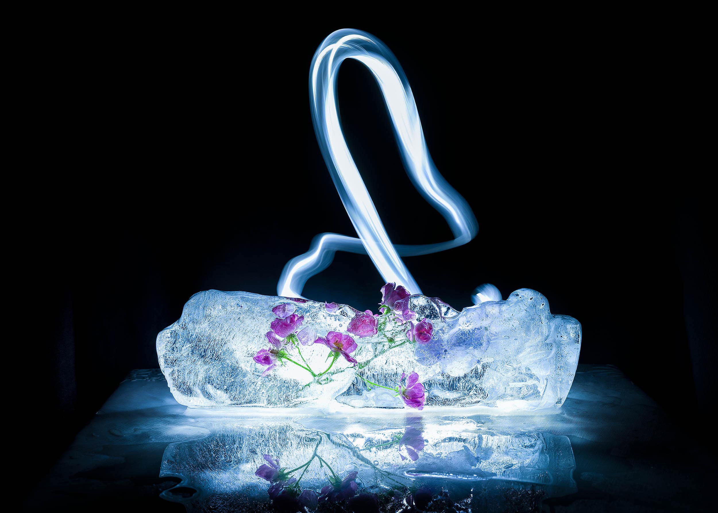 這組作品2019年拍攝于自己家里,每種花都有關于家關于我個人記憶的故事和回憶,歲月輾轉成歌,時光流逝如花。當歲月流逝,所有的東西都消失殆盡時,我且拾起一朵落花,誠如剪下一段時光,把它冰封在晶瑩剔透的冰塊里,當數年或數月之后我快門按下的剎那,我的心與花兒一起飛舞,空中飄蕩的唯有花兒的熟悉的氣味戀戀不散,讓往事歷歷在目.....孤直唯知不愧心,飄零無復記流年......