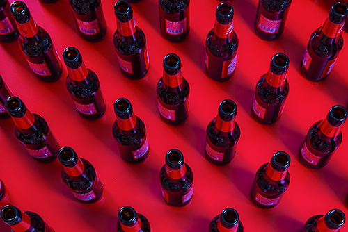 用紅色為底的視覺沖擊,展現(xiàn)垃圾分類后可回收再利用的圖形
