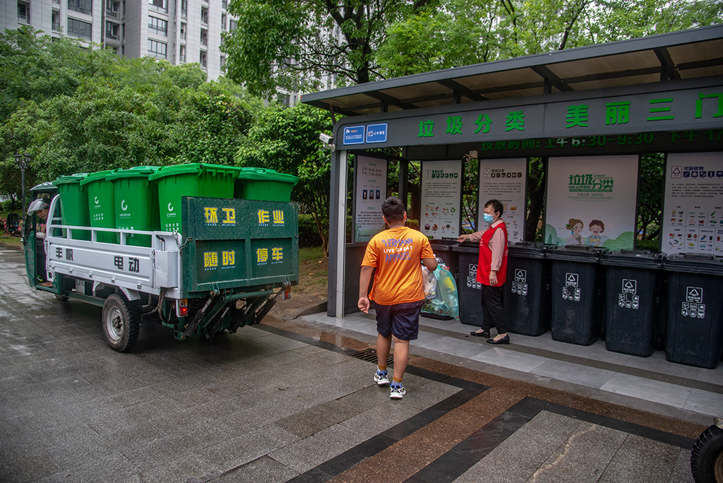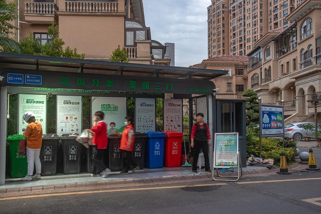 作品介紹: 小區(qū)里,一到投放時(shí)間,眾市民都按照要求拎著垃圾袋分類(lèi)投放
