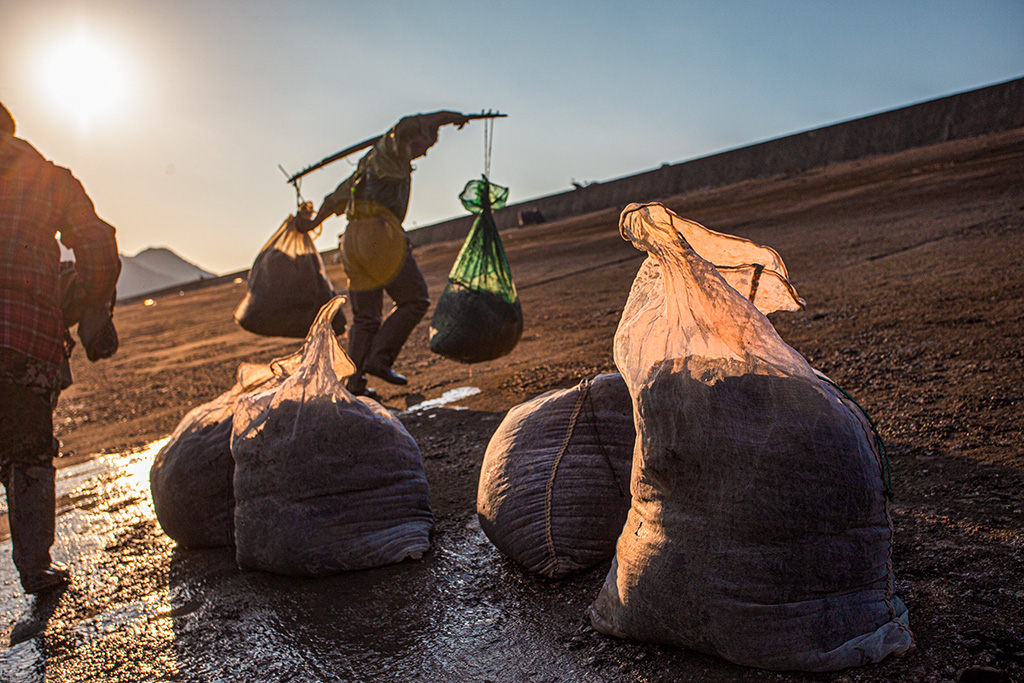 返回頂部>> 照片說(shuō)明: 22、2016.11.4 夕陽(yáng)下一袋袋紫菜被挑上岸