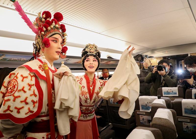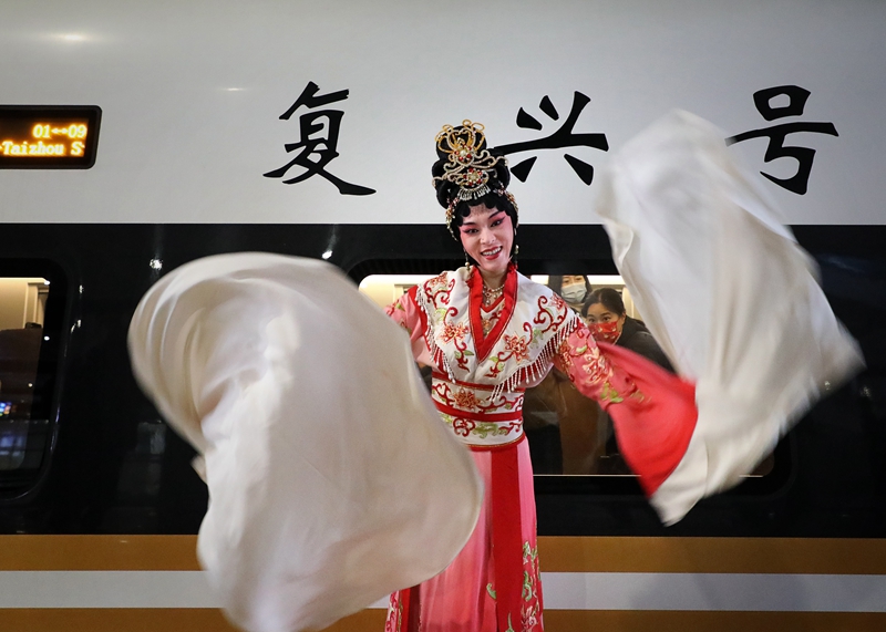 2022(1月8日)上午,被譽為“浙東唐詩之路”的杭臺高鐵正式開通運營,9點28分,高速列車從臺州站發(fā)車,臺州亂彈《呂布與貂蟬·小宴》選段亮相首發(fā)杭臺高鐵,驚艷全程。