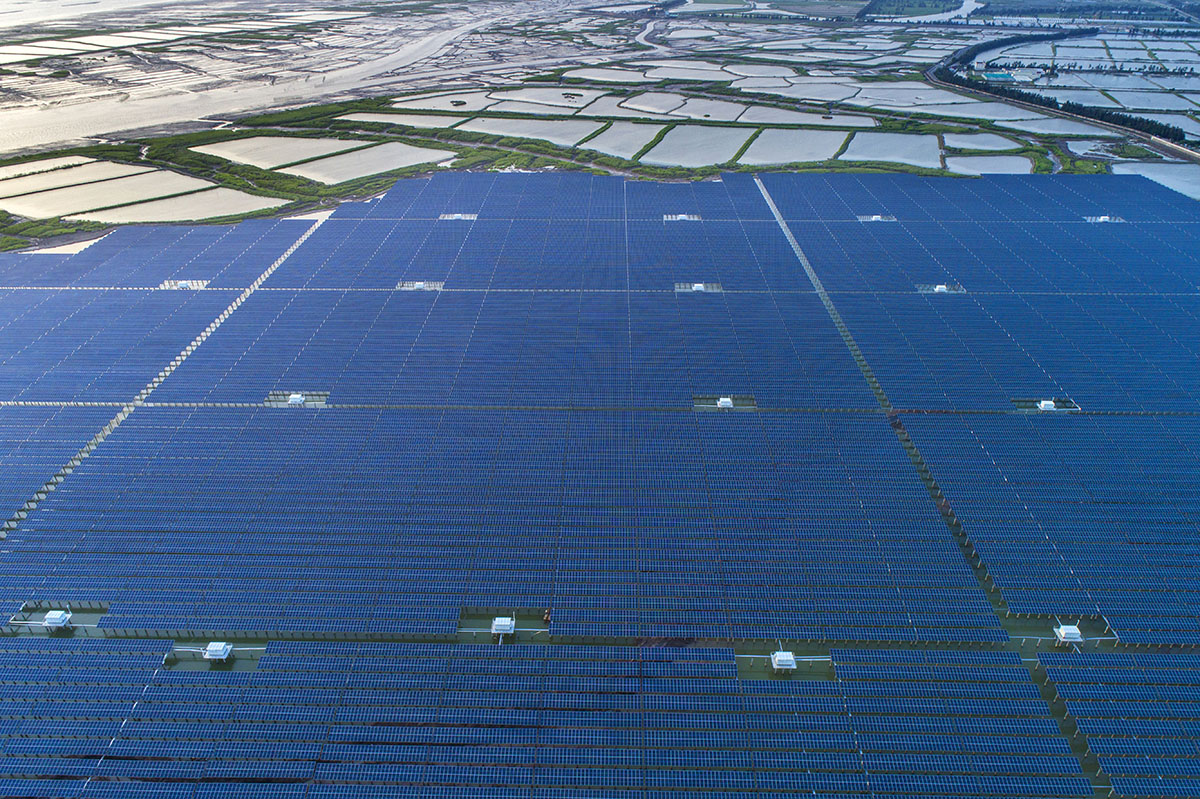 近年來,玉環(huán)市漩門灣灘涂實施“生態(tài)十電力”行動計劃,倡導(dǎo)綠色用能,使光伏發(fā)電與藍天白云相互映襯,構(gòu)成一幅綠色能源新畫卷。
